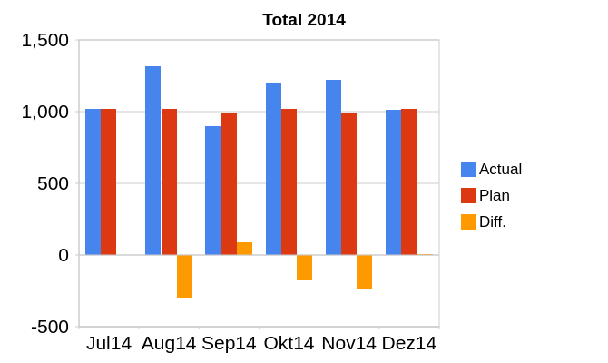 Trotz Einsparungen in den Kategorien "Essen" und "Hafengebühren" haben wir leider, leider ca. 600 EUR mehr ausgegeben als geplant, das entspricht dem Budget von fast einem Monat und ist hauptsächlich auf unseren Motor zurückzuführen inkl. Dieselverbrauch. Für das Jahr 2015 habe ich die Aufteilung innerhalb der Kategorien ein wenig verändert. Das Budget wird nicht erhöht! Wir müssen mit ca. 900 EUR/Monat auskommen.
