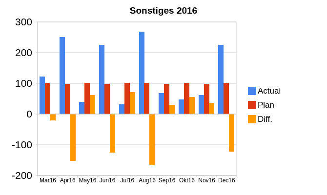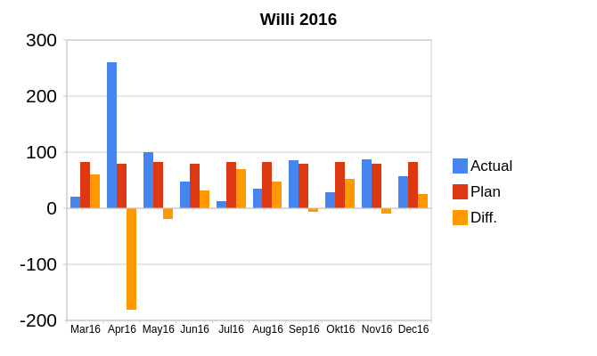 April: Für unseren Willi ist uns nichts zu teuer: Windelvorrat (Pampers) für hoffentlich zwei Monate gekauft, Fahrradsitz, Wickelunterlage, UV-Schwimmanzug, größere Kleidung, Bio-Fertiggerichte sind leider nicht umsonst und daher ~200 EUR mehr ausgegeben als geplant.