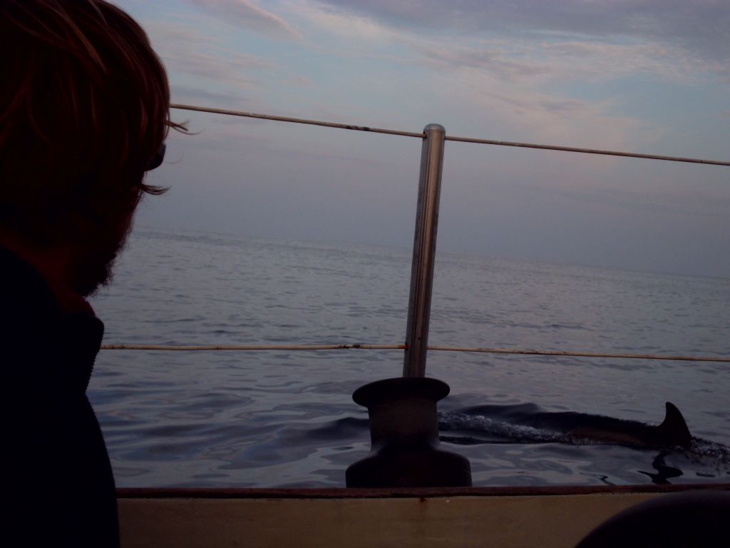 Alderney hat es uns angetan. Eine Woche ankern wir in der Bucht von Braye Harbour, die Hafenmeister Mark und Nigel lachen nur noch, wenn ich wieder mal “verlängern” komme. Jeden Tag Afternoon Tea im Segelclub, dann abends Monty’s (eine Brauerei auf Guernsey) aus Pintgläsern, daran können wir uns gewöhnen. Allerdings werden die Tage immer kürzer und die Nächte kälter, es wird Herbst im Englischen Kanal. Als daher für einen Tag leichte Ostwinde angesagt sind, rüsten wir unsere Küche noch schnell mit echten englischen Pintgläsern aus und essen nochmal Burger und Fish and Chips im Hafenpub, dem Diver’s Inn, dann lichten wir den Anker und verlassen bei Hochwasser den Hafen von Alderney. Der angesagte Ostwind ist leider sehr schwach, deshalb motoren wir. Unterwegs machen wir erstmals Bekanntschaft mit einer richtig echten Atlantikdünung. Extrem flache, ca. einen Meter hohe Wellen mit langer Wellenlänge bewegen die SAILOR MOON sanft auf und ab. Man bemerkt es kaum, nur beim Blick auf den Horizont sieht man manchmal sehr weit und manchmal nur bis zum nächsten Wellenberg. Für uns mit unserer Mittelmeer- und Nordseeerfahrung etwas völlig Neues. Außerdem besuchen uns die ersten Atlantikdelfine, die neugierig ein Stück mit der SAILOR MOON mitschwimmen.