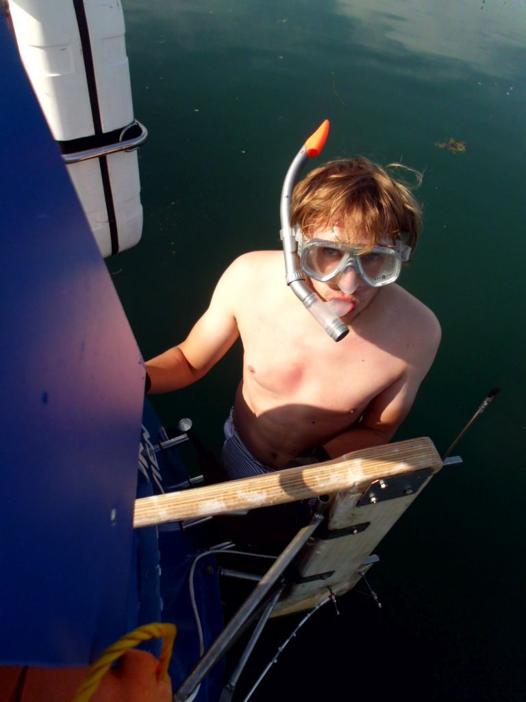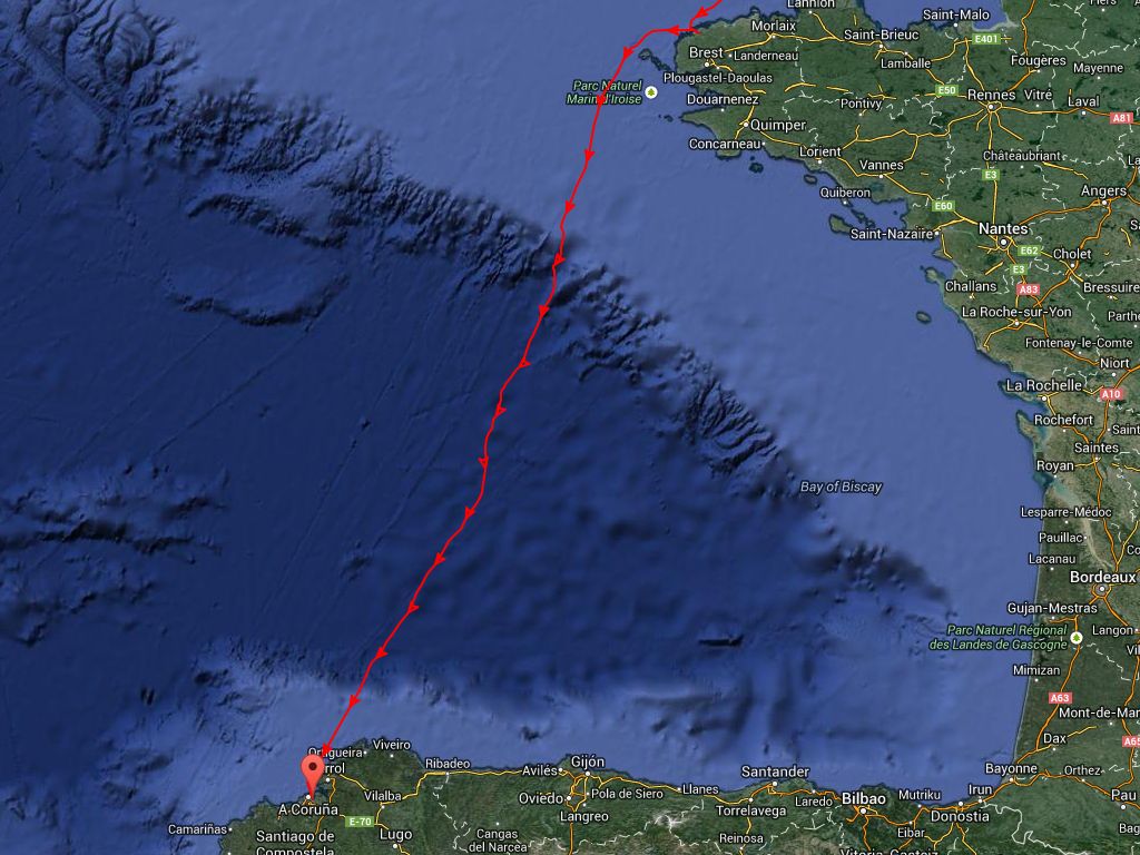 Am nächsten Tag laufen wir im Morgengrauen in L’Aber-Wrac’h ein, einer kleinen Marina in einer Flussmündung (bretonisch: Aber). Die Sonne scheint und es ist warm, auch der Hafen und der kleine Ort sind sehr nett, allerdings bleiben wir nur einen Tag, denn die Wetterprognose ist äußerst günstig für unsere nächste Etappe: Wir wollen über die Biskaya, direkt nach La Coruña in Spanien. Wir füllen daher unseren Dieseltank und unsere zwei Extrakanister, befreien die Schraube und das Ruder von Seegras, füllen unseren Wasservorrat auf und marschieren die paar Kilometer zum nächsten Supermarkt und kaufen reichlich Essen ein. Dann, am nächsten Tag um drei Uhr Nachmittag, lösen wir die Leinen und starten das Projekt Biskayaüberquerung.