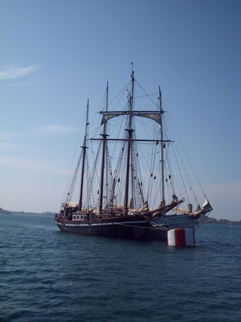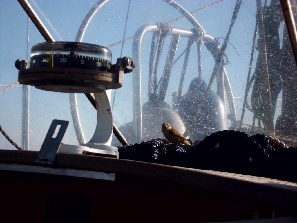 Die Ausfahrt aus L’Aber-Wrac’h verläuft unproblematisch, keine 100 Meter nach der Hafenausfahrt setzen wir die Genua und segeln mit 4,5 Knoten die Flussmündung hinaus. Draußen nimmt der Wind ab, wir werden langsamer, aber mit unseren Dieselvorräten konnen wir maximal ein Drittel der Strecke motoren, deshalb bleibt der Motor aus. In der ersten Nacht zieht dichter Nebel auf, unsere Positionslichter im Masttopp können wir vom Cockpit aus nur mehr erahnen. Andere Schiffe sehen wir nicht, aber am Funk geht es wild zu, der Mann von Ushant Traffic hat einen harten Arbeitstag und morgen sicher keine Stimme mehr. Aber mit Hilfe des GPS halten wir uns außerhalb der Schifffahrtsrouten und segeln mit 1,5 Knoten und leichtem Gegenstrom um die Ile d’Ouessant herum. Sehen können wir sie allerdings nicht, und so werden die Felsen vor L’Aber-Wrac’h das letzte Land für die nächsten fünf Tagen bleiben.