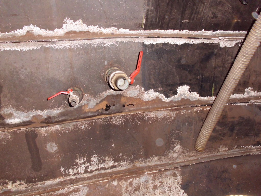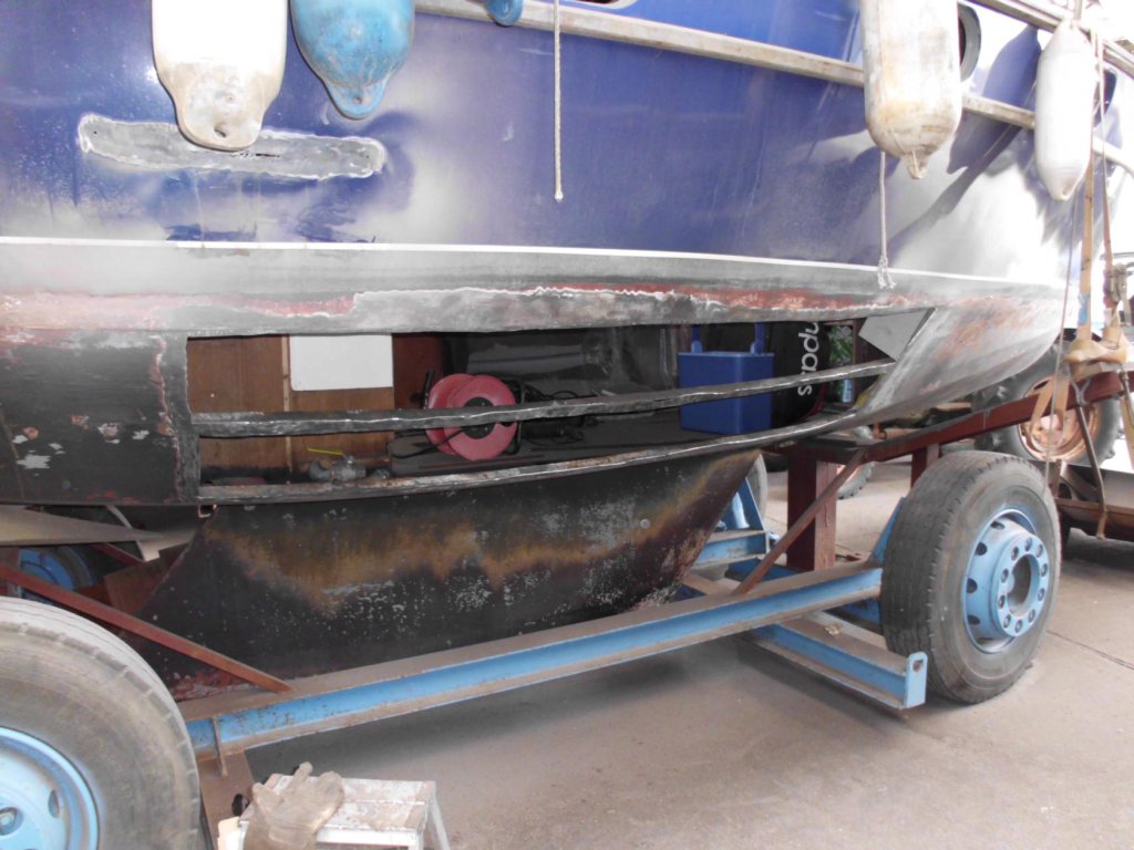 Innen inspiziere ich den Stahl und stoße dabei auf einige Roststellen. Vor allem mitschiffs, im Bereich der Stringer, dürfte lange Wasser gestanden haben und der Stahl sieht dementsprechend aus. Nach der Bearbeitung mit einem Pressluftnadler durchdringe ich an mehreren Stellen sogar den Rumpf. Der Kielbereich sieht dafür besser aus als erwartet.