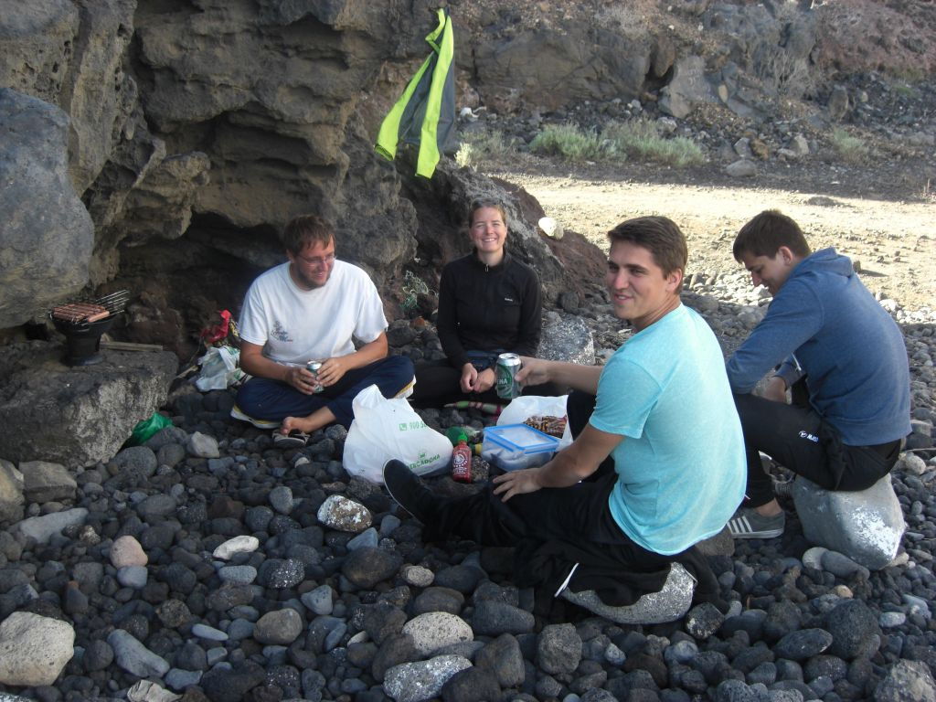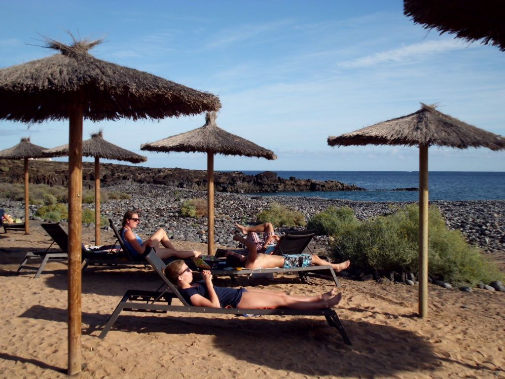 Unsere Strategie scheint aufzugehen, das Wetter im Süden von Teneriffa ist tatsächlich besser als in Gran Canaria, es regnet nicht und es ist um einige Grade wärmer. Wir erfoschen ein bisschen die Gegend, die allerdings außer riesigen Appartmentkomplexen und Golfplätzen für die meist britischen Touristen kaum etwas zu bieten hat. Trotzdem finden wir einen kurzen Strand mit dem für Teneriffa typischen schwarzen Sand und lassen es uns mit selbst gegrilltem Fisch gut gehen.
