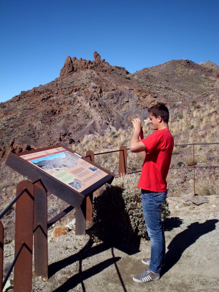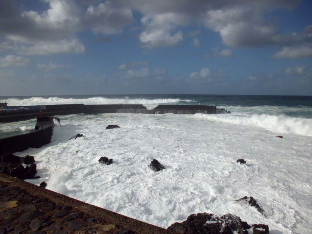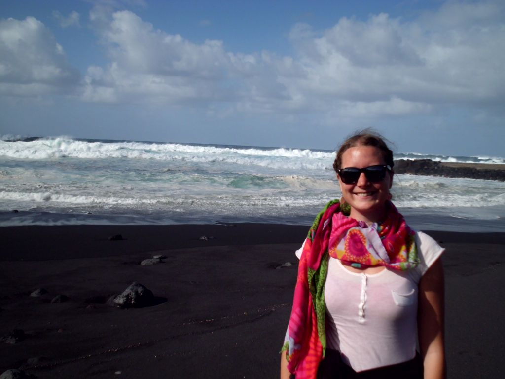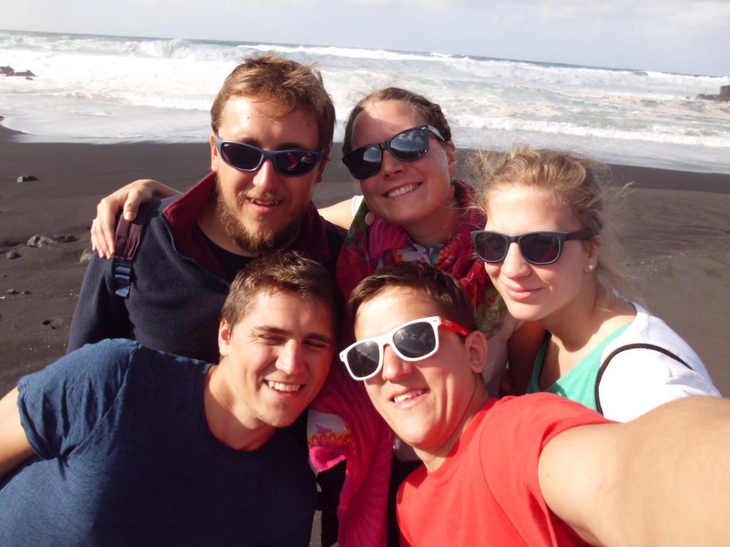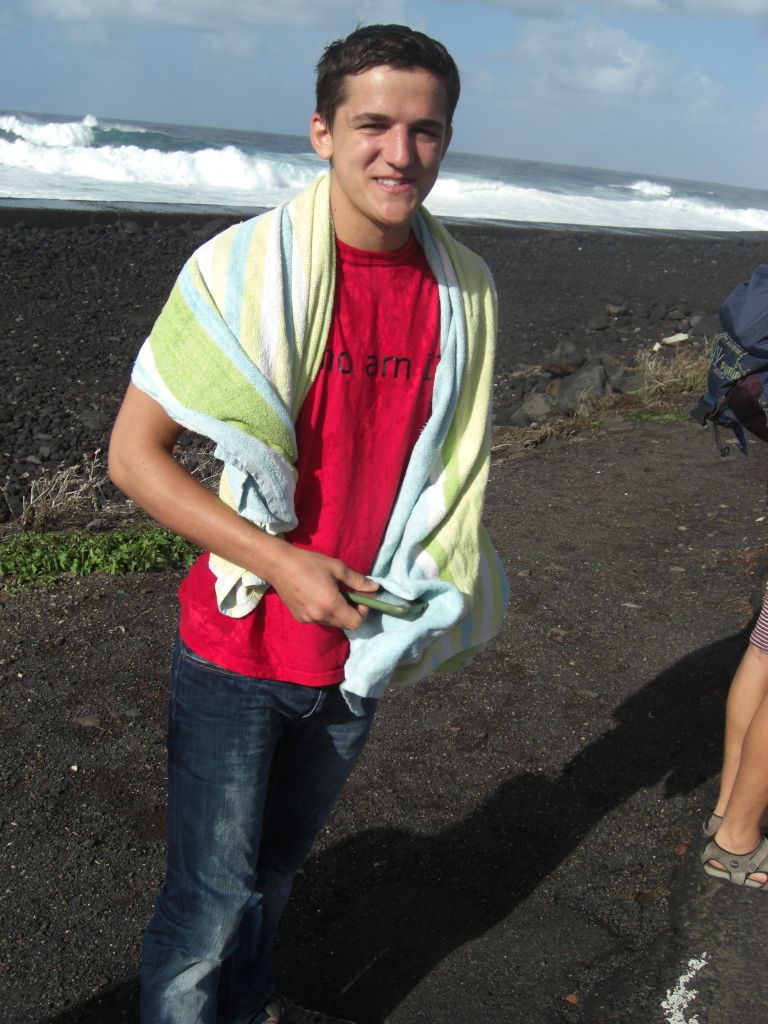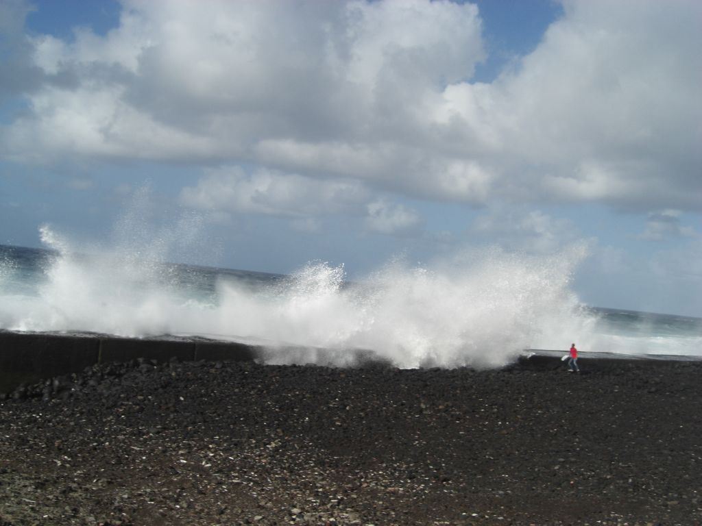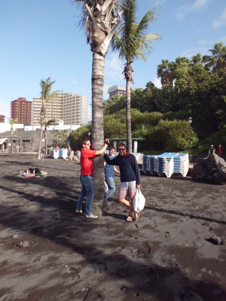 Ich bin seit mehr als einem halben Jahr nicht mehr Auto gefahren und ich habe viel Spaß dabei, vor allem weil die Küsten- und Bergstraßen Teneriffas sehr abwechslungsreich sind und interessante Ausblicke ermöglichen. Teneriffa ist zwar sehr touristisch geprägt, aber die Landschaft ist wirklich beeindruckend. Auf kleinstem Raum gibt es eine Vielfalt an unterschiedlichen Klimazonen, und der trockene Süden und der kühlere, feuchte Norden unterscheiden sich stark (scheinbar besonders interessant für BOKU-Absolventen 🙂 ). Außerdem liegt lustigerweise der höchste Berg Spaniens auf Teneriffa, der El Teide mit 3.718 m, den wir natürlich auch besuchen. Die Straße windet sich auf bis zu 2.200 m, die Seilbahn auf den Gipfel ist leider wegen des noch immer starken Winds geschlossen. Trotzdem können wir “fast” noch warme Lava bewundern und uns gegenseitig mit Schnee bewerfen. Das für den gleichen Tag geplante Bad im Meer muss wegen der starken Brandung leider ausfallen, nur der Martin ist ein bisschen übermütig und wird von den Wellen samt Gewand halb gebadet.