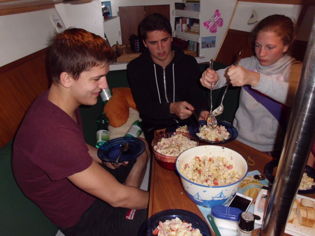 Auf der SAILOR MOON ist derzeit einiges los, unsere Gäste geben sich momentan beinahe die sprichwörtliche Klinke in die Hand. Und auch nach über einer Woche mit fünf Personen auf unserem Schiff steigen wir uns noch immer nicht gegenseitig auf die Zehen, die SAILOR MOON hat auch auf nur 30 Fuß Länge genug Platz für diese Anzahl an Leuten. Ob das an den toleranten Gästen oder unserer gelungenen Innenaufteilung liegt, können wir nicht sagen, vermutlich ein bisschen an beidem.