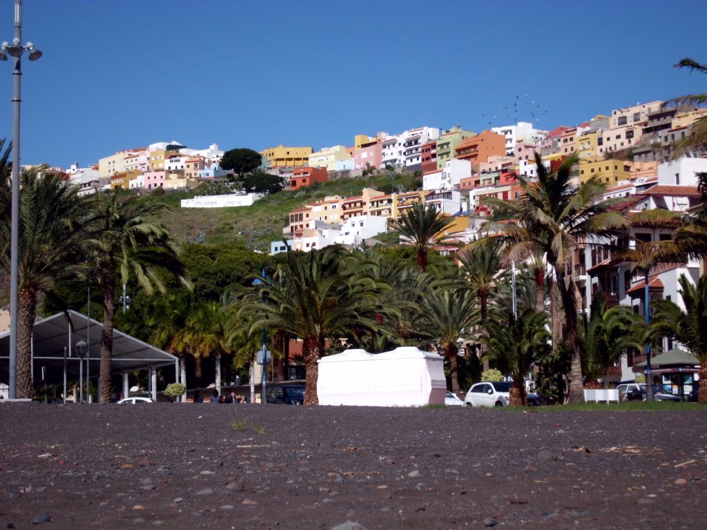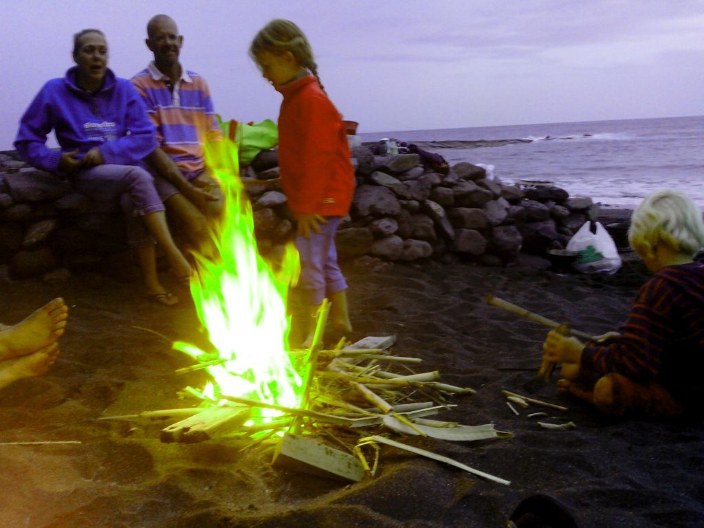 Für die restlichen Tage mieten wir uns wiedermal ein Auto und erkunden Gomera. Die Landschaft ist beeindruckend, enge, grüne Täler, trockene Berghänge und dichte Lorbeerwälder wechseln einander ab. Der von vielen so gelobte Ferienort Valle Gran Rey auf der anderen Inselseite gefällt uns zwar nicht so gut, aber dafür finden wir im dortigen SPAR-Markt einen in flaschen abgefüllten, fertig gemixten Tinto de Verano. Schon allein dafür hat sich der Ausflug gelohnt! Das Grillen am Strand mit nachfolgendem Lagerfeuer müssen wir leider wegen Regens ziemlich plötzlich beenden, trotzdem lernen unsere Gäste das Fahrtenseglerleben ein bisschen kennen. Die beiden sind seit kurzem auch Bootsbesitzer, und gegenseitig werden Fotos hergezeigt, Schiffsprobleme diskutiert und reichtlich Sprite statt Bier getrunken.