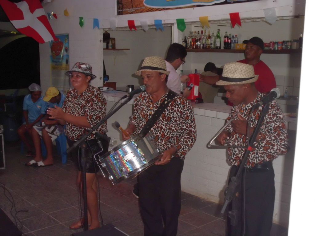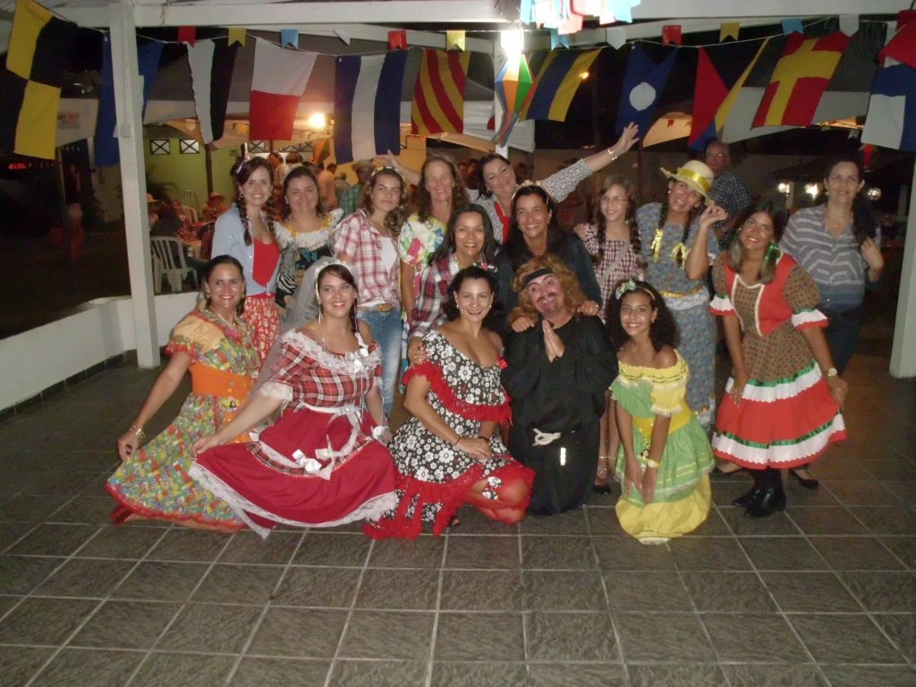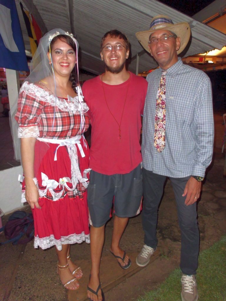 Ein paar Tage später bin ich zu einem anderen Fest im Yachtclub eingeladen. Viele der Gäste haben sich extra Kostüme genäht, auch eine Band wurde engagiert und die Stimmung ist gut. Anscheinend wird eine Art Erntedankfest gefeiert, und die Kostüme sollen die Kleidung der Landbevölkerung aus früherer Zeit darstellen, ganz verstehe ich den Hintergrund jedoch nicht. Als Höhepunkt findet dann zu späterer Stunde eine Fake-Hochzeit statt. Fabia, eine der Yachtclub-Ladies, verkleidet sich als Priester mit Zahnlücke und “traut” Carolina und Guilherme, die auch im richtigen Leben vor Kurzem geheiratet haben. Dem johlenden Publikum nach zu urteilen macht sie ihre Sache gut, ich verstehe natürlich wiedermal kein Wort.