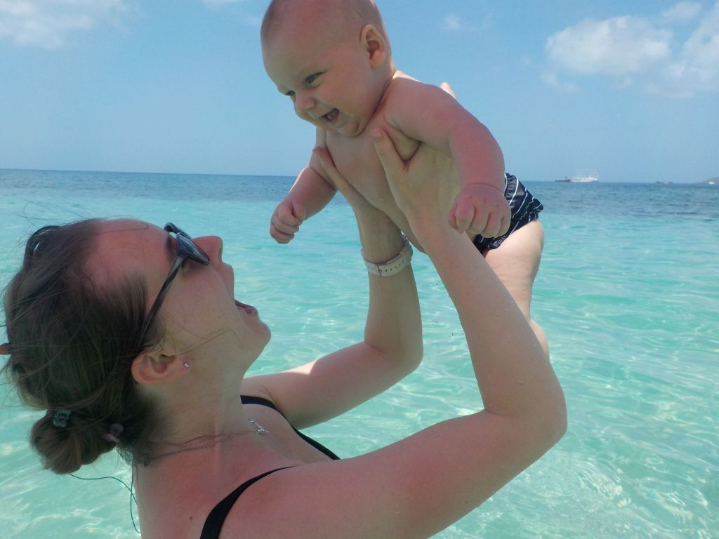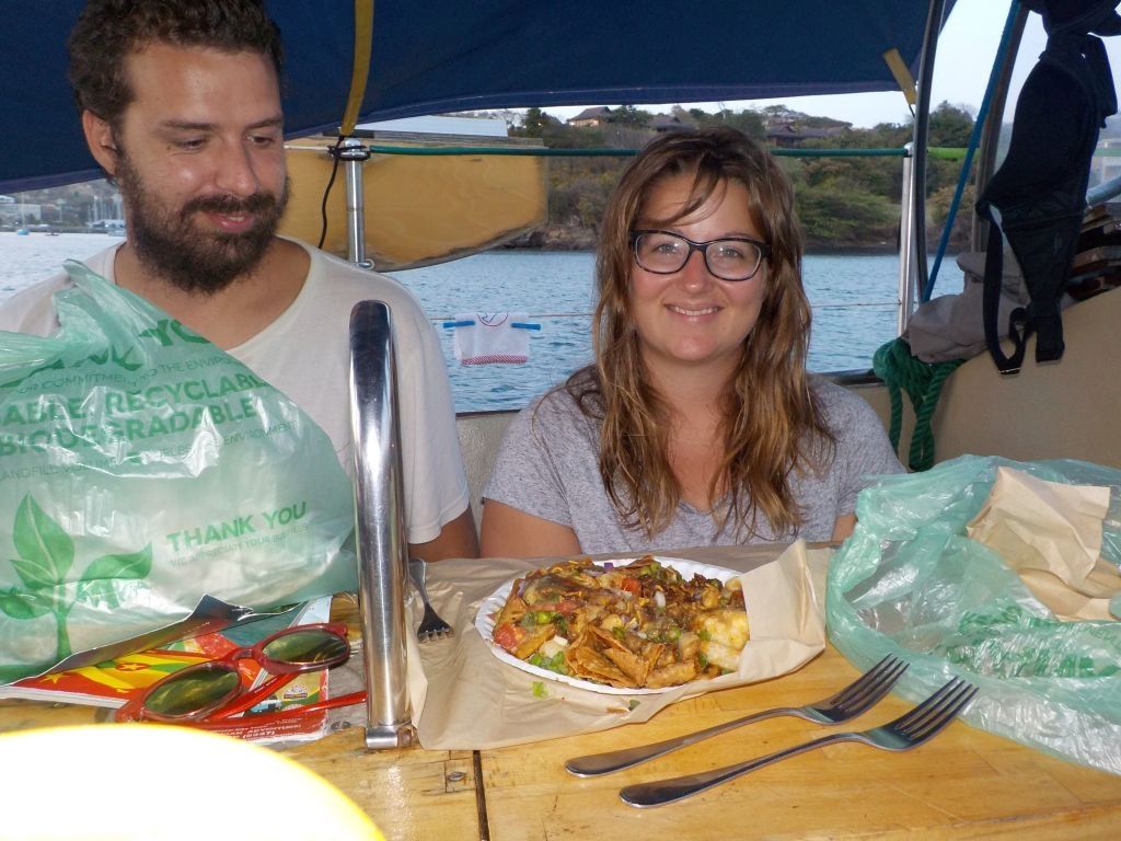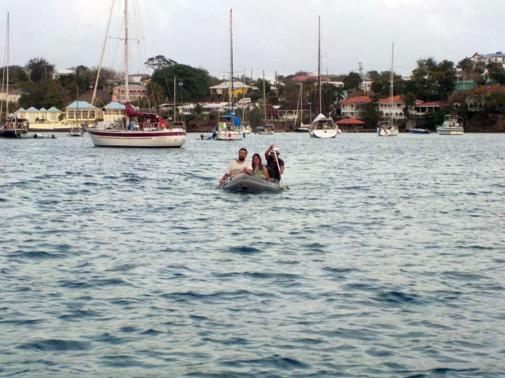 Jaqueline und Willi sind wieder “daheim” auf der SAILOR MOON! Nach sieben langen Wochen können wir uns am Flughafen von Grenada endlich wieder in die Arme schließen. Die beiden haben eine komplizierte Anreise hinter sich, aber Willi war während der Flüge zum Glück total entspannt und hat die Zeit mit Schlafen und Trinken verbracht. Eine sauteure Taxifahrt später sitzen wir auch schon mit einem Koffer, einer Reisetasche, einer Laptoptasche, einem Rucksack und noch ein paar anderen Dingen bepackt in unserem Schlauchboot und merken schnell, dass das Paddeln in Zukunft eine Herausforderung werden wird. Jaqueline hat Willi umgeschnallt und ist dadurch in ihrem Bewegungsradius stark eingeschränkt, ich sitze mit der Reisetasche auf dem Rücken und dem Koffer auf den Knien halb im Wasser – unser Dinghiboden ist leider trotz oftmaliger Reparaturversuche ein wenig undicht, daher darf alles, was trocken bleiben soll, den Boden nicht berühren. Als dann auch noch Wind aufkommt, natürlich genau von vorne, ist die Entscheidung gefallen: Wir brauchen einen Außenbordmotor! Neue sind hier unverhältnismäßig teuer, also falls jemand irgendwen kennt, dessen Freund einen Cousin hat, der gerade in der Karibik seinen alten Außenborder verkaufen will…
