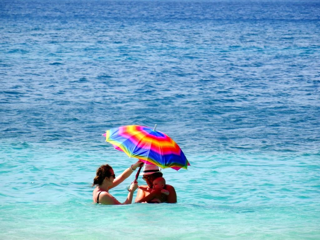Bei den Fotos habe ich gedacht… wow, das würde ich meinen beiden kleinen Prinzessinen auch gönnen wollen. Und dann aber auch sofort… oh jeh…ist der kleine Willi auch gut eingecremt und auf dem einen oder andere Foto war er schon ganz rot und dann zum Glück die Auflösung der bunte Sonnenschirm 😉