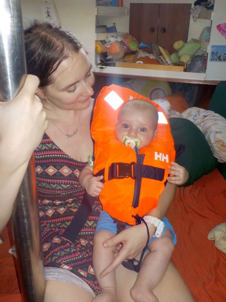 Abgesehen von den leichten Transportschwierigkeiten im Beiboot leben sich Willi und Jaqueline wieder gut an Bord der SAILOR MOON ein. Jaqueline ist voller Tatendrang und würde am Liebsten gleich am ersten Tag die von mir kunstvoll verstauten Lebensmittel und sonstigen Dinge umräumen, neu beschriften oder umorganisieren, sie murmelt irgendwas von “Platzverschwendung”, “ausbaufähig” oder “Verbesserungspotential”, doch zum Glück kann ich sie ein bisschen bremsen. Schmalzi, Resa und ich haben uns wochenlang wohlgefühlt in unserem Chaos, und auf See lässt die Disziplin unweigerlich ein wenig nach…