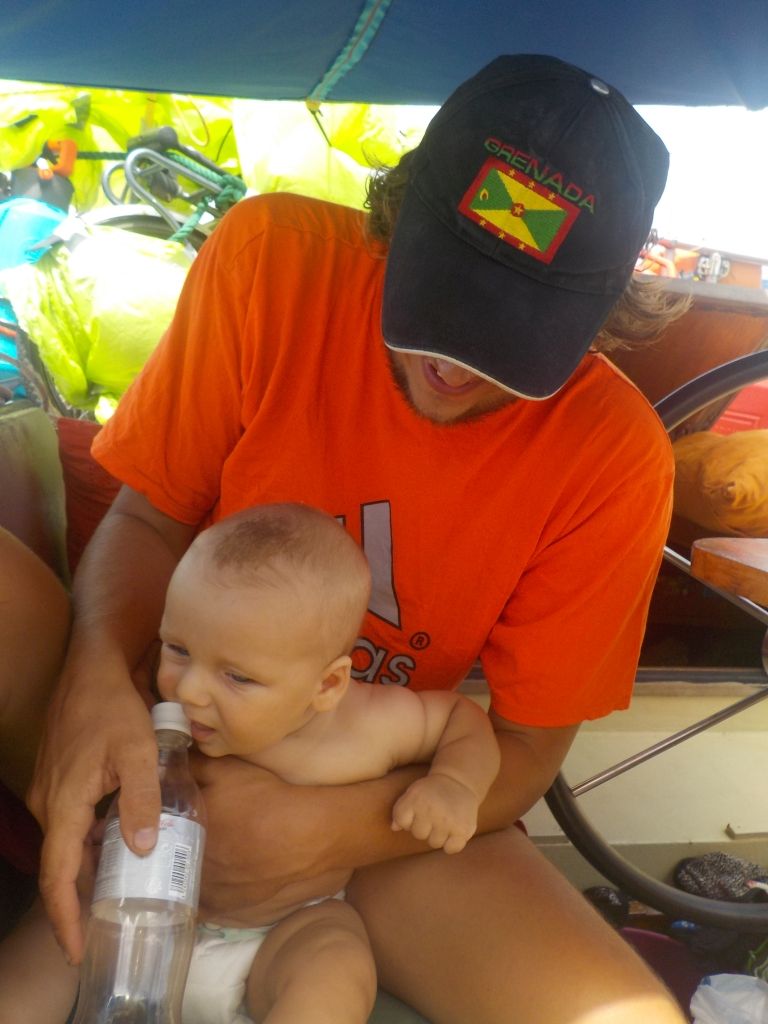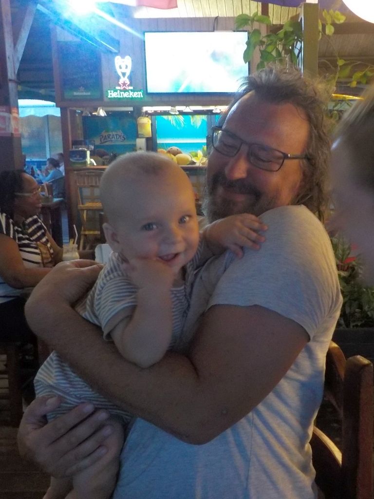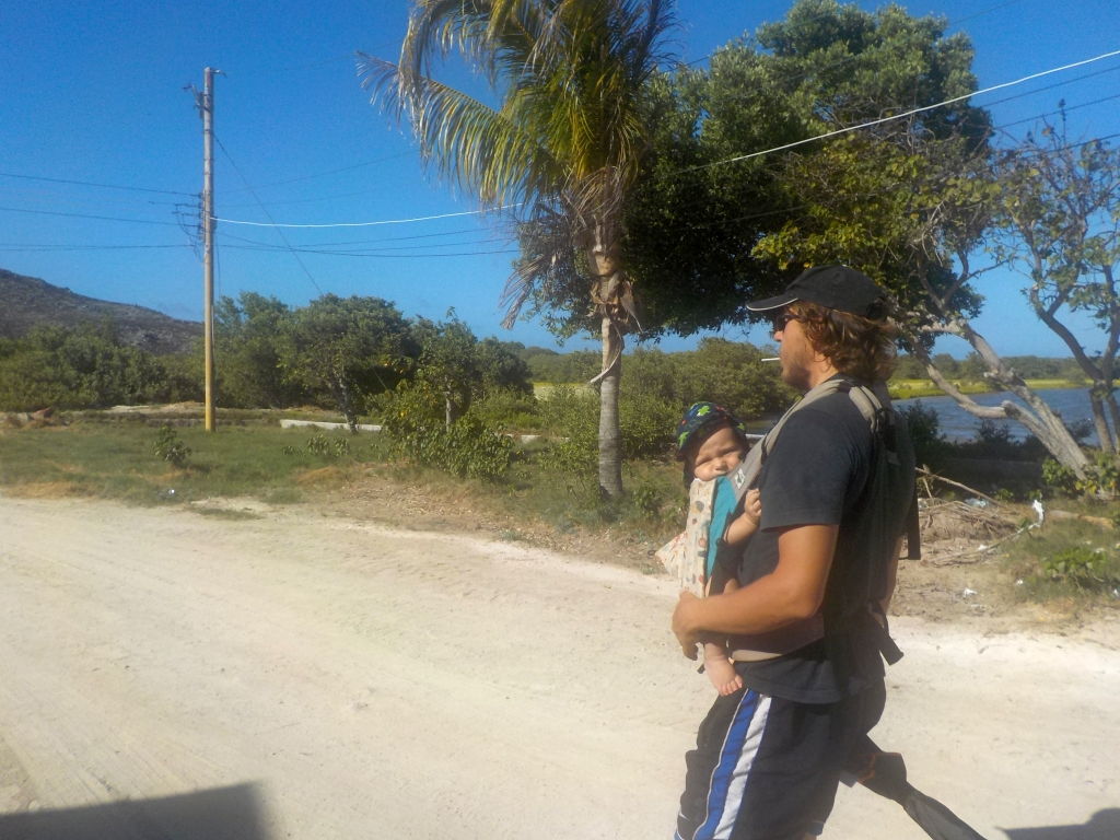 Die Überfahrt wird sehr anstrengend für uns beide: Willi entschließt sich, ausschließlich neben Jaquelines Brust schlafen zu wollen, was bedeutet, dass Jaqueline fast ununterbrochen unter Deck mit Willi beschäftigt ist und ich vier Nächte hintereinander Wache gehen muss. Zusätzlich dazu sind wir – das Timing könnte schlechter nicht sein – beide die ersten zwei Tage seekrank, wohl durch die lange Pause in Martinique. Am dritten Tag sind wir beide wieder halbwegs fit, allerdings schon ziemlich geschafft. Wind und Wetter sind aber hervorragend, wir segeln mehrere 100-Meilen-Etmale heraus, es ist warm und regnet nicht. Am fünften Tag kommt morgens schließlich die Hauptinsel des Los-Roques-Archipels, El Gran Roque, in Sicht. Erleichterung stellt sich ein, der Anker fällt bei 4 Meter Wassertiefe. Wir legen uns erstmal in die Kojen, und als ich am nächsten Morgen zum Einklarieren an Land gehe, legt sich auch die letzte Nervosität. Gran Roque und seine Bewohner wirken sehr nett, unsicher fühlt man sich hier absolut nicht.