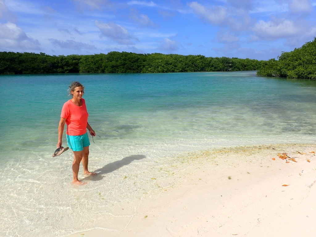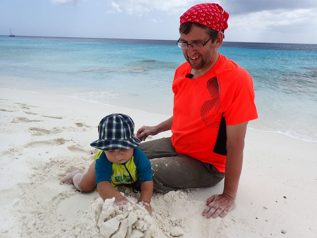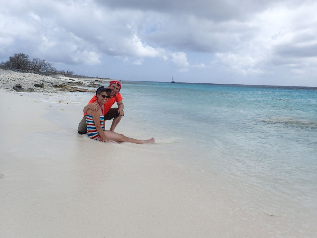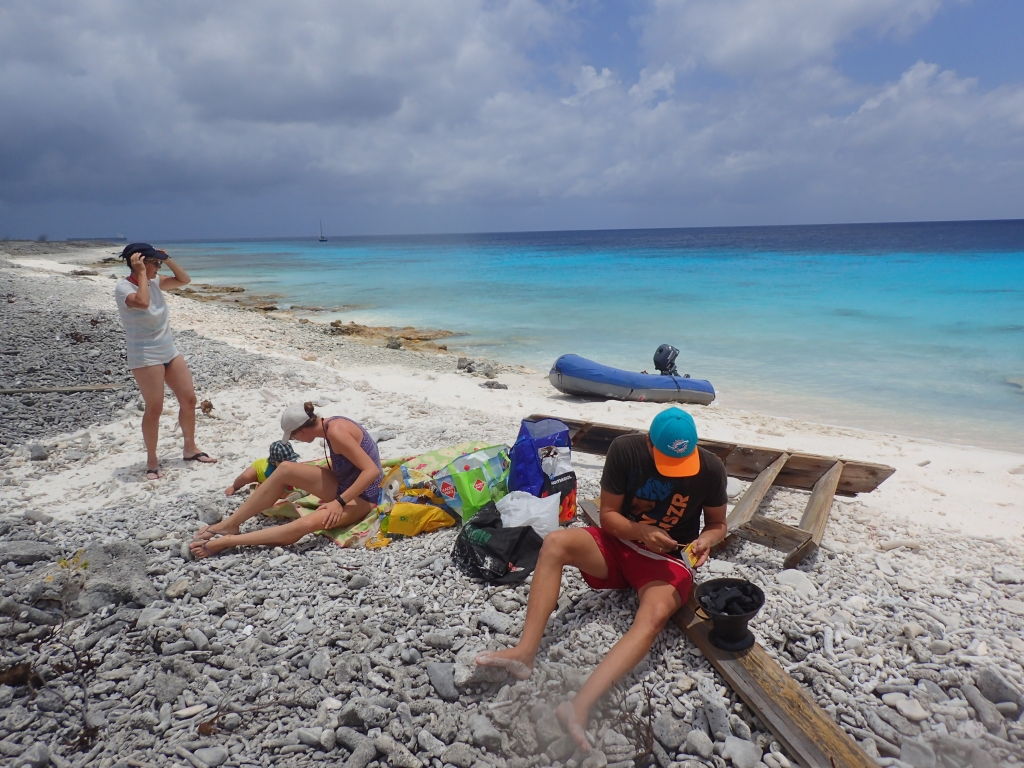 Die nächsten paar Tage vergehen, während wir Maria und Wolfgang unsere Lieblingsplätze und Lieblingsbeschäftigungen in und um Kralendijk zeigen: Bier trinken zur Happy Hour in Karel’s Bar, EM schauen im El Mundo, schnorcheln an der Riffkante neben der SAILOR MOON, Eis essen bei Gio’s, das Mittagsmenü im Diver’s Diner, das Burger-Special am Mittwoch in der Marina, sonntags chillen am Pool im Plaza Resort… es gibt viel zu tun, aber Stress kommt aus irgendeinem Grund trotzdem keiner auf. Ab und zu können wir uns sogar überwinden, unsere Stammboje zu verlassen, und wir motoren mit der SAILOR MOON zu ein paar anderen Tauchplätzen und nach Klein Bonaire, wo wir nach einem improvisierten Grillen am Strand sogar die Insel umrunden.