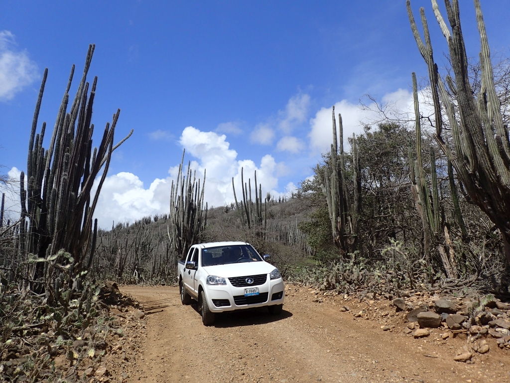 Mehr als eine Woche vergeht so wie im Flug, dann mieten wir uns einen Pickup (natürlich die Deluxe-Version!) und fahren damit in den Nationalpark im Norden der Insel. Die Landschaft ist karg, fast wüstenartig, mit riesigen Kakteen dazwischen, keiner von uns hat bisher etwas Vergleichbares gesehen. Abgesehen davon gibt es Flamingos, aggressive Leguane, Papageien und viele andere Vögel zu sehen. Die Parkverwaltung hat zwar offensichtlich andere Ansichten als wir, was man als Sandstrand bezeichnen kann und was nicht, aber trotzdem war es ein beeindruckender Ausflug mit einem Picknick zwischen Meer und Flamingos am Ende.