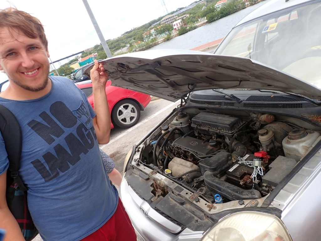 Nach der Abreise meiner Eltern bleibt uns gerade noch Zeit, unserer SAILOR MOON ein neues, viel zu großes und 140 Watt starkes Solarpaneel zu spendieren, bevor Ma und Vicky schon bei uns eintreffen. Die beiden haben vorher eine Woche in Bonaire verbracht und bleiben danach noch fast drei Wochen bei uns an Bord. Gleich der Tag nach ihrer Ankunft ist ein besonderer: Jaquelines dreißigster Geburstag nämlich, den wir nach einem ausgedehnten Frühstück am Strand verbringen, bevor wir uns abends bei toller Aussicht Steak, Cocktails und ein aus Frankreich importiertes Dessert schmecken lassen. Die nächsten paar Tage zeigen wir unseren Gästen die Umgebung von Spanish Water und Willemstad, bevor sie auch gleich das Gesundheitssystem auf Curacao aus nächster Nähe erleben dürfen: Jaqueline taucht bei einem Sprung von der SAILOR MOON ins Wasser so unglücklich ein, dass sie sich die rechte Schulter ausrenkt. Unserem noch nie benutztem Buch „Medizin auf See“ folgend versuchen wir, das Gelenk wieder einzurenken, müssen aber mangels dem notwendigen anatomischen Wissen bald aufgeben. Jaqueline beißt tapfer die Zähne zusammen, und Ma und ein Segler vom Nachbarboot bringen sie ins Krankenhaus, während Vicky und ich Willi bei Laune halten. Willi wird noch gestillt, deshalb sind die handelsüblichen Schmerzmittel tabu, aber Jaqueline hält tapfer durch, und nach einer Stunde sind alle Knochen wieder, wo sie sein sollten. Für die nächsten Wochen ist aber Schonung angesagt, deshalb ändern wir unseren Plan ein bisschen und mieten schon am nächsten Tag ein Auto bei Luuk’s Car Rental. Den Tipp haben wir von anderen Seglern bekommen: Luuk will keinerlei Papiere oder Kreditkarten sehen, aber für umgerechnet 135 Euro plus 200 Dollar Kaution kann man bei ihm für eine Woche ein Auto mieten, natürlich bar auf die Hand und um ein Vielfaches günstiger als bei den großen Autovermietern. Genau unser Ding also, und die paar Ameisen und Kakerlaken, die nach und nach aus allen möglichen Ritzen gekrochen kommen, bekämfpen wir mit reichlich Insektenspray.