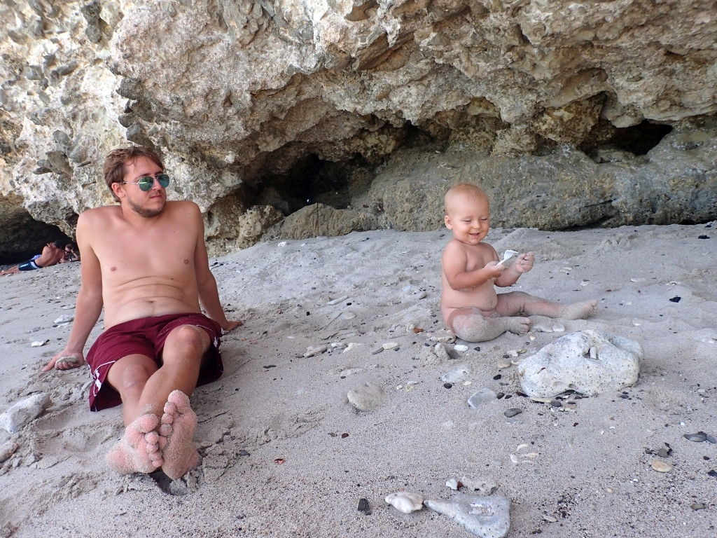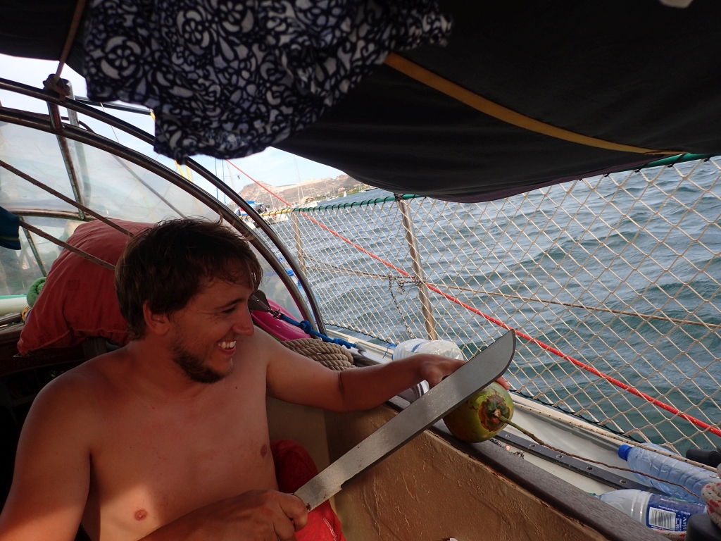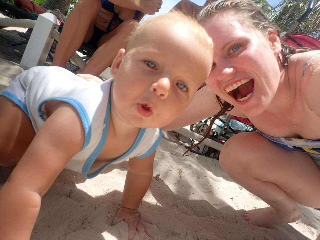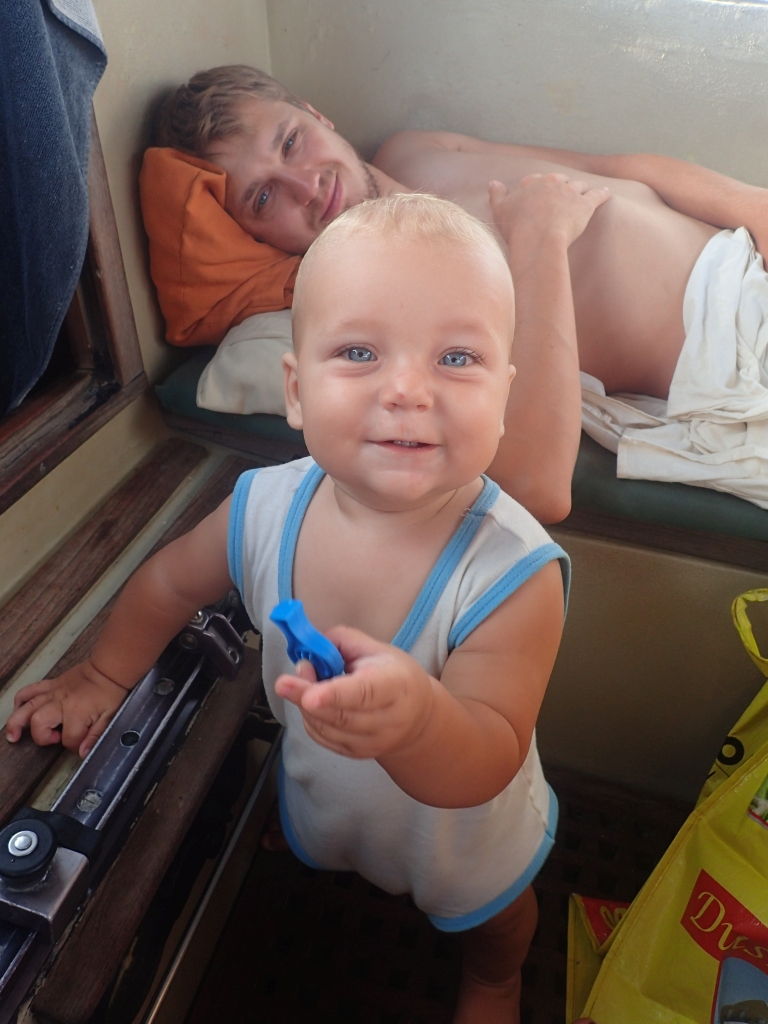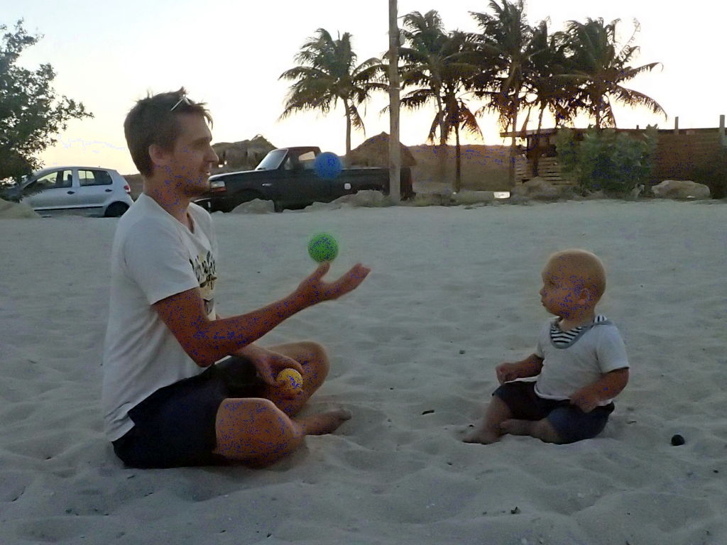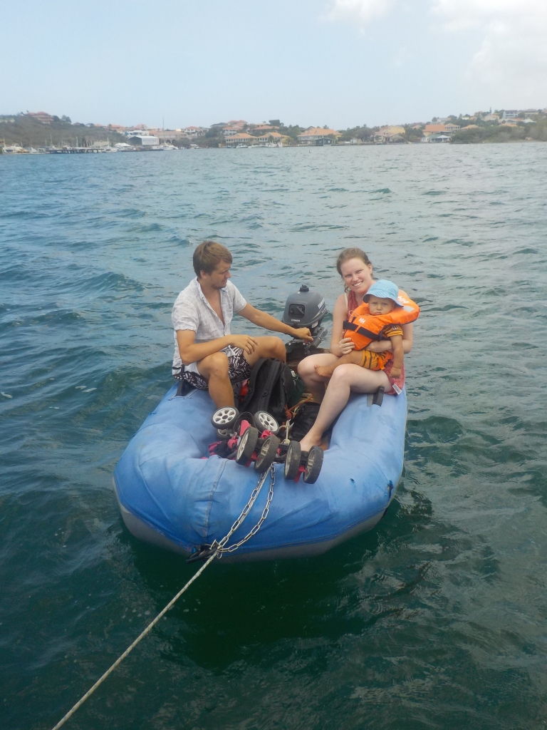 Unsere Gäste können außerdem live miterleben, wie Willi seine ersten Schritte macht, noch etwas wackelig zwar, aber es wird jeden Tag besser. Auch sonst ist Willi immer und überall an vorderster Front dabei, die Brandung am Strand zum Beispiel macht ihm schon lange keine Angst mehr, und mehr als einmal müssen wir ihn daran hindern, ins zu tiefe Wasser zu krabbeln. Am Boot sorgt er immer für reichlich Action: Mal leert er eine volle Flasche klebrigen Sirup in die Bilge, mal stellt er den Kühlschrank neu ein oder testet, wieviele Feuchttücher eigentlich drinnen sind in so einer Box. Über Langeweile können wir uns wirklich nicht beklagen!