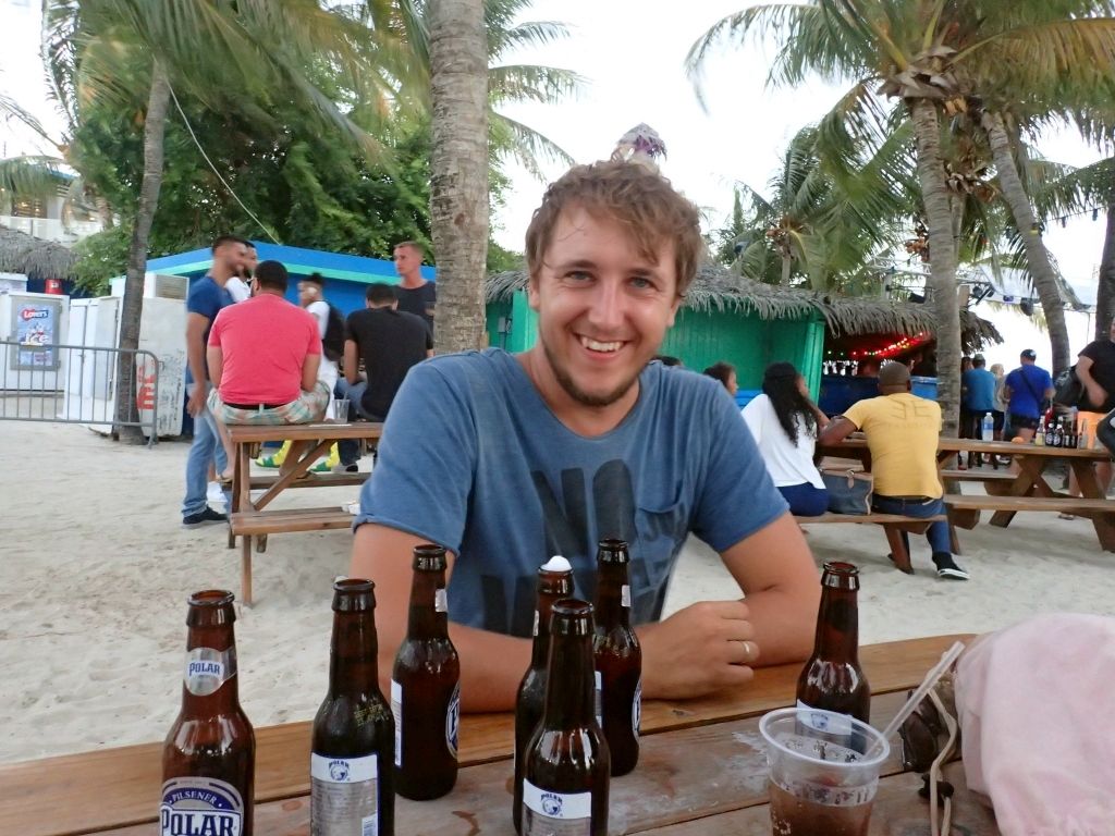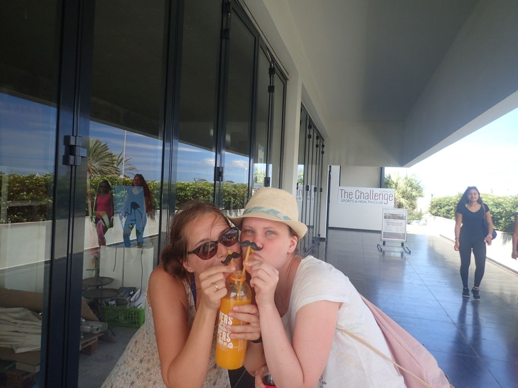 Das vielleicht nicht allerbeste Pferd in Luuk’s Stall bringt uns mehrmals sicher in den Norden der Insel, wo wir an wunderschönen Stränden baden, von Felsen direkt ins türkise Wasser springen, reichlich Batidos – frische, leicht gefrorene Fruchtsäfte – trinken oder einen Markt besuchen. Außerdem besuchen wir eine Aloe Vera-Plantage, eine Straußenfarm und nutzen das Auto, um Einzukaufen und Wäsche zu waschen. Viel zu schnell ist die Woche vorbei und wir müssen das Auto zurückgeben. Jaqueline hat keine Schmerzen mehr und legt die Armschlinge bald ab, muss allerdings weiterhin vorsichtig mit ihren Armbewegungen sein und lässt deshalb sicherheitshalber die ausgemachte Windsurf-Stunde aus. Ma, Vicky und ich jedoch stehen zum ersten Mal auf Surfbrettern und machen gar keine so schlechte Figur. Die restliche Zeit vergeht schnell mit Boccia am Strand, reichlich Drinks auf anderen Booten, grillen am Tugboat Beach, einem nervenaufreibenden Beachtennismatch zwischen Ma und mir (mit dem besseren Ende für ihn, allerdings erst im fünften und entscheidenden Satz), Red Snapper und Kaktussuppe (nicht so unser Ding) in der alten Markthalle und vielen Happy Hours in diversen Strandbars.