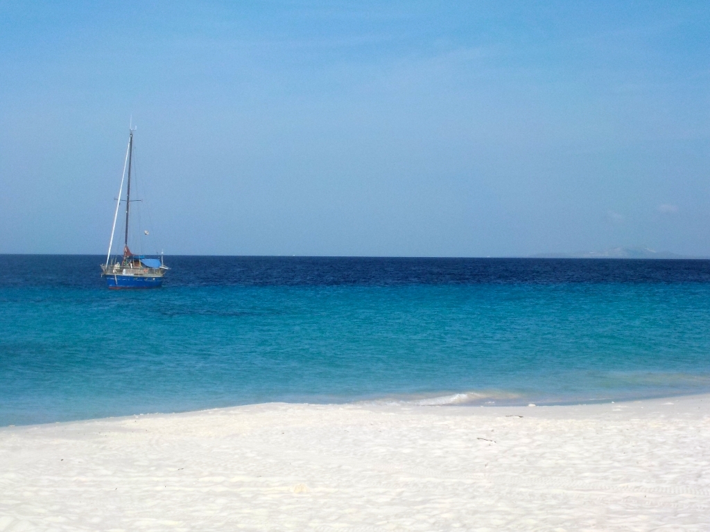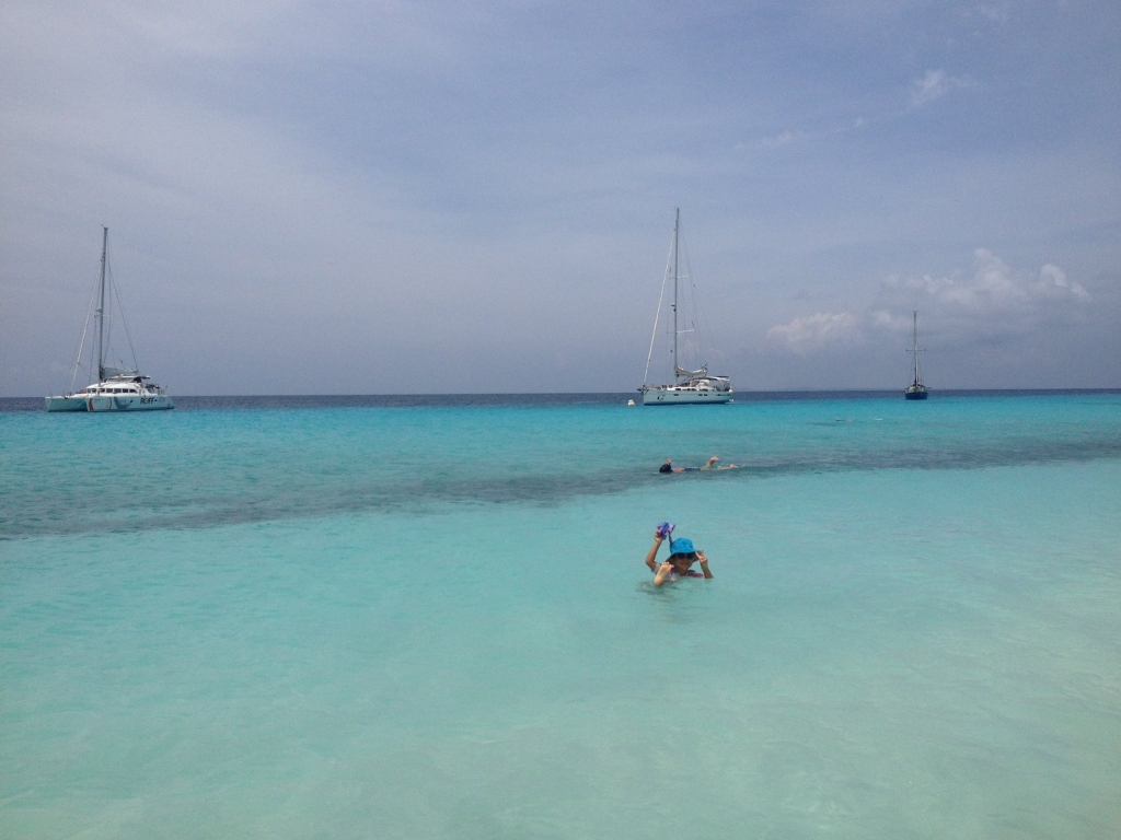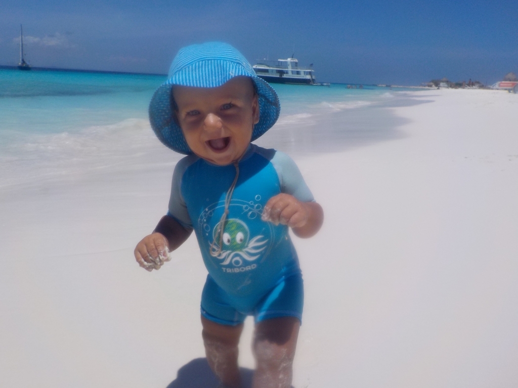 Anfangs ist noch alles beim Alten, wir verbringen die Tage mit kleinen Bootsreparaturen, Spaziergängen mit Willi und natürlich am Strand. Wir lassen uns sogar eines Tages überreden, die SAILOR MOON für einen Kurztrip nach Klein Curacao fertigzumachen, etwas, für das wir sonst viel zu faul sind. Wir holen den Anker auf und motoren sechs Stunden lang gegen Wind und Welle zur kleinen, flachen Nachbarinsel Curacaos, wo wir drei Tage bleiben und gemeinsam mit Freunden aus Portugal und Brasilien das unglaublich tolle Wasser und den (leider nur morgens und abends) einsamen Sandstrand genießen. Nur mit dem Fischen klappt es nicht, die Thunfische wollen nicht so richtig anbeißen. Der Rückweg nach Spanish Waters ist dann sehr angenehm, mit frischem Wind aus der richtigen Richtung brauchen wir nur drei Stunden, und Willi darf erstmals den im Cockpit montierten Auto-Kindersitz testen.