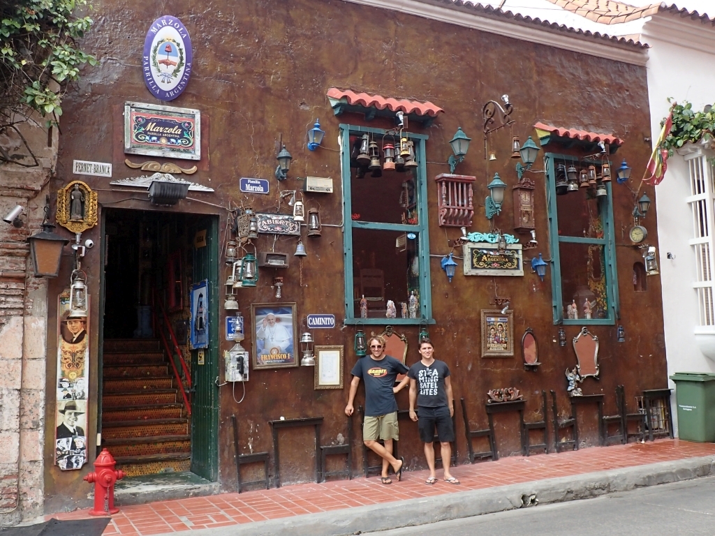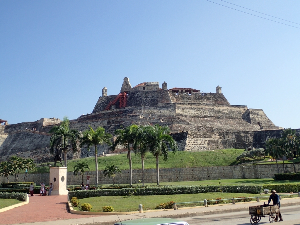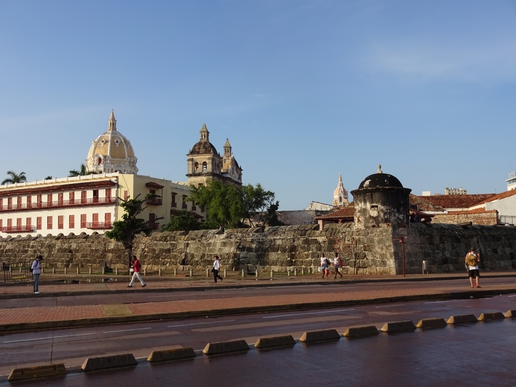Cartagena hat wirklich einiges zu bieten: Die ummauerte Altstadt ist gut erhalten, im benachbarten Stadtteil ist abends auf den Straßen viel los, es gibt kilometerlange Strände, ein topmodernes Hotel- und Einkaufsviertel und mächtige Befestigungsanlagen. Wir spazieren stundenlang durch Gassen mit schön restaurierten Kolonialhäusern, besichtigen Forts und spazieren die Stadtmauer entlang. Das Mittagessen lassen wir meist ausfallen und ernähren uns von Obst und anderen kleinen Snacks, die man hier an jeder Ecke bekommt. Zum ersten Mal seit Brasilien schwelgen wir in Mangos, Papayas oder Wassermelonen und trinken frisch gepresste Obstsäfte in ausgezeichneter Qualität. Dazu gibt es noch gegrillte Fleischspieße, Arepas, Empanadas und natürlich Bier – dank Mattis Spanischkenntnissen bekommen wir all das zum Gringo-Preis.