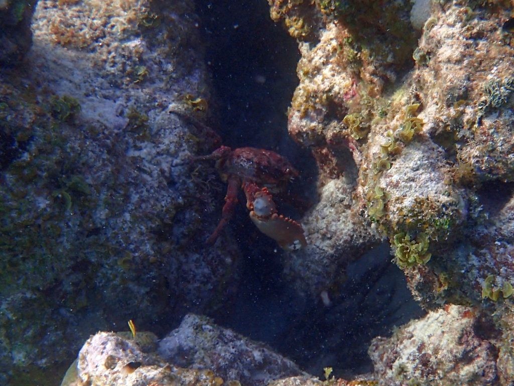 Nichtsahnend sitzt die Krabbe in einer Felsspalte…
