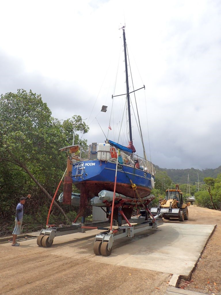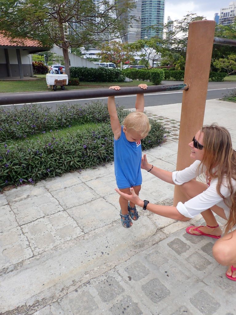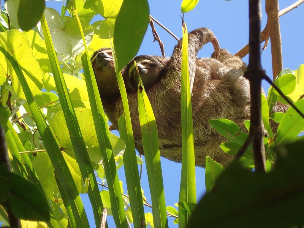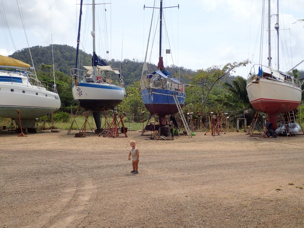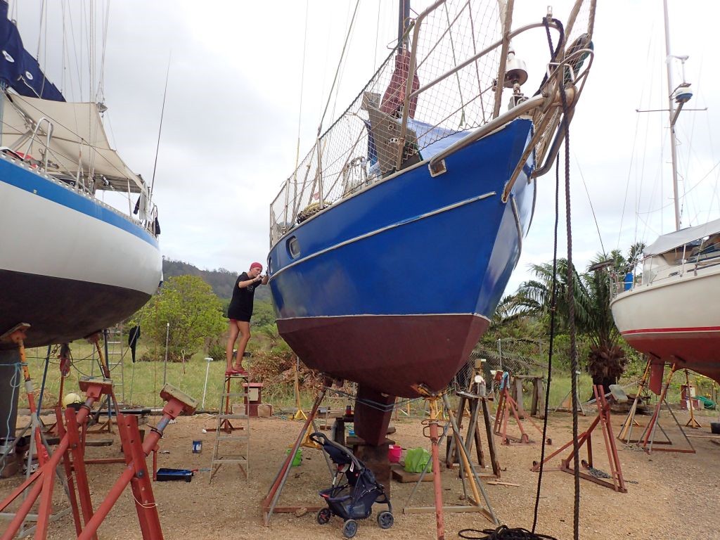 Das Bord-WC ist nicht benutzbar, es gibt Moskitos und Sandfliegen, in der Kajüte hat es 35 Grad, jeder Tag kostet teures Geld und einen Haufen Arbeit gibt es obendrein: Auf einem Segelboot, das an Land steht, zu leben, ist einigermaßen ungemütlich. Trotzdem steht die SAILOR MOON (und wir mit ihr) seit einigen Tagen in der Panamarina in Puerto Lindo, unsere Reparaturen lassen sich einfach nicht länger aufschieben. Schon am zweiten Tag bauen wir das Ruder und die Propellerwelle aus und gehen auf Fehlersuche. Es stellt sich heraus, dass das Ruderlager grundsätzlich in Ordnung ist und wir hier nichts zu schweißen haben, wir jedoch unsere Propellerwellenlager von “nicht vorhanden” auf “wassergeschmierte Gummilager” umbauen müssen. Die benötigten Ersatzteile sind in Panama nicht oder nur für Unsummen zu organisieren, weshalb wir sie kurzerhand aus England importieren. Während der Wartezeit sind wir nicht allzu arbeitsmotiviert, streichen aber das Cockpit neu und erneuern auch den blauen Lack am Rumpf. Dazwischen unternehmen wir lange Spaziergänge in den Nachbarort Cacique, wo es neben einem kleinen Supermarkt auch einen tollen Spielplatz für Willi gibt. Außerdem gibt es in der Marina viele Tiere zu sehen: Der Tukan Zazu zum Beispiel, den die Marinabetreiber vor Jahren von einer Stromleitung gerettet haben und der regelmäßig auf eine Papaya vorbeischaut. Oder eine Faultierfamilie mit Baby, Affen, Kolibris…kein Wunder, dass viele der Boote schon jahrelang hier an Land liegen!