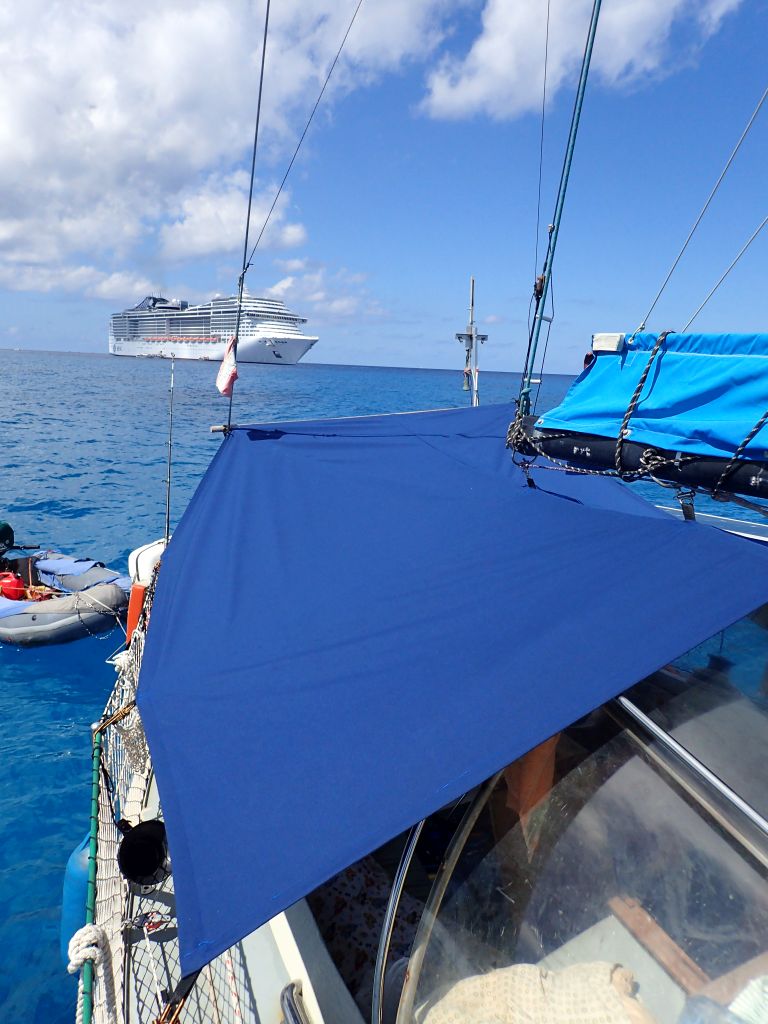 Wir spendieren unseren Klapprädern den dritten Satz Brems-, Schaltseile und Fahrradketten dieser Reise (unglaublich wie das rostet!) und können von nun an endlich mal wieder per Fahrrad eine Insel erkunden. Wir radeln zum berühmten Seven-Mile-Beach, dem bisher schönsten “Urlaubs”-Strand unserer Reise, besuchen die Lagune auf der Nordseite der Insel oder zeigen Willi die vielen aufwändig gestalteten Spielplätze. Die SAILOR MOON kommt natürlich auch nicht zu kurz, wir nähen ein neues Sonnendach und können endlich wieder gemütlich im Cockpit chillen. Ansonsten machen wir uns immer häufiger über ein Thema Gedanken, das wir bisher sehr gern verdrängt haben: Wie wird es mit uns und der SAILOR MOON weitergehen?