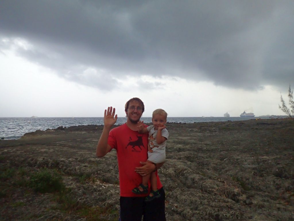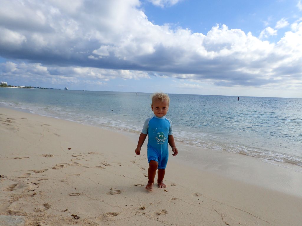 Unser Aufenthalt auf Providencia ist leider nur ziemlich kurz, das relativ gute Wetter lässt uns den Anker schon bald wieder lichten. Ein paar Spaziergänge über die Insel, ein kurzer Besuch am Strand im Nachbarort und einige Einkäufe gehen sich noch aus, bevor wir (mit viel zu vielen übrig gebliebenen kolumbianischen Pesos im Gepäck) schon wieder auf See sind. Die Strecke Providencia – Cayman Islands gehört nicht zu den angenehmsten Segelstrecken in der Karibik, die Wellen können ungemütlich hoch werden, die Windrichtung ist oft suboptimal und ausgedehnte Sandbänke und merkwürdige Strömungen gibt es obendrein. Wir begegnen keinem einzigen anderen Segelschiff, dafür meint das Wetter es aber ganz gut mit uns. Das Geschaukel hält sich in Grenzen und der Wind weht mit angenehmen 15 Knoten. Nur wenige Male wird das Cockpit unter Wasser gesetzt. Trotzdem ist tagelanges Am-Wind-Segeln nicht unbedingt gemütlich, der Bug kracht in die Wellen, es ist laut, feucht und das Boot segelt ständig mit einer starken Schräglage. Wir machen das beste daraus, kochen uns mit einigen akrobatischen Einlagen köstliche Käsespätzle und halten uns und Willi mit Tablet-Spielen bei Laune. Leider weht der Wind um ein paar Grad zu weit nördlich, wir können Grand Cayman nicht direkt anliegen und müssen ein paar Kreuzschläge einbauen. Manchmal nehmen wir auch den Motor zu Hilfe um ein paar Meilen nach Westen zu kommen. Die reparierte SAILOR MOON schlägt sich aber ausgezeichnet, und nach fünf Tagen mit wenig Schlaf laufen wir früh am Morgen in Georgetown auf Grand Cayman ein. Die Port Authority nimmt die Einklarierungsprozedur sehr genau, wir müssen erstmal an einer Boje warten, dann werden wir von einem Motorboot an einen Steg geleitet. Dauernd muss ich ans Funkgerät, um unsere neue Position durchzugeben oder neue Anweisungen entgegenzunehmen. Ein paar Stunden später ist aber alles erledigt und wir dürfen endlich an Land. Das lassen wir uns natürlich nicht zweimal sagen!