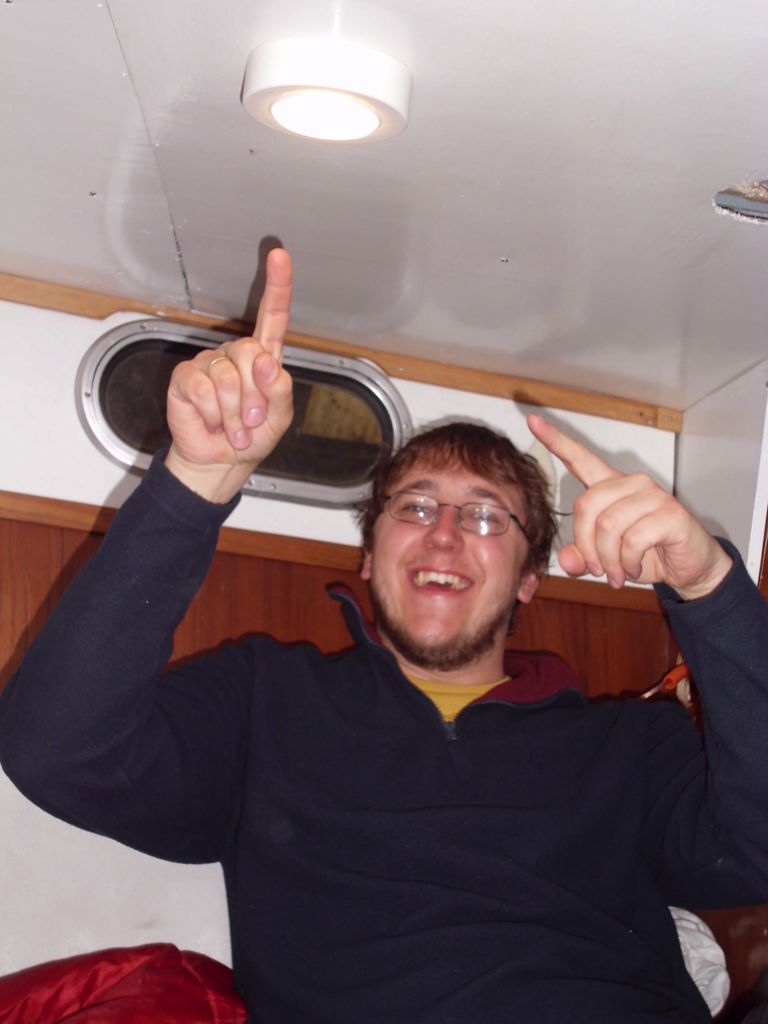 Um 21:00 Uhr geht der Spaß los, doch zunächst tummeln sich nur einige wenige Besucher im Werfthof, deshalb bleiben wir bis ein Uhr Früh an Bord und vertreiben uns die Zeit mit Mastermind, Schach und Gin Tonics. Dann öffnen wir vorsichtig die Hallentür, klettern über die Bar, die davorsteht, und feiern ordentlich mit. Techno ist nicht so ganz unsere Musik, deshalb verbringen wir den Großteil der Zeit in der RnB-Halle, wo Jaqueline fleißig tanzt und ich mit meinem Beanie ein bisschen aus der Masse heraussteche. Später sitzen wir dann noch mit Heino, Gisela und ein paar anderen vor dem Fischbrötchenshop (ja, Gisela hat wirklich bis fünf Uhr Früh fleißig Fischbrötchen verkauft…der neue Partyhit!) und warten auf “Thank you for the Music” von ABBA, das letzte Lied von DJane Funky Diva. Um halb sechs liegen wir in den Kojen, allerdings nur kurz, weil pünktlich um zehn Uhr Vormittag das Vatertagsfrühschoppen beginnt, diesmal mit DJ Kerli…