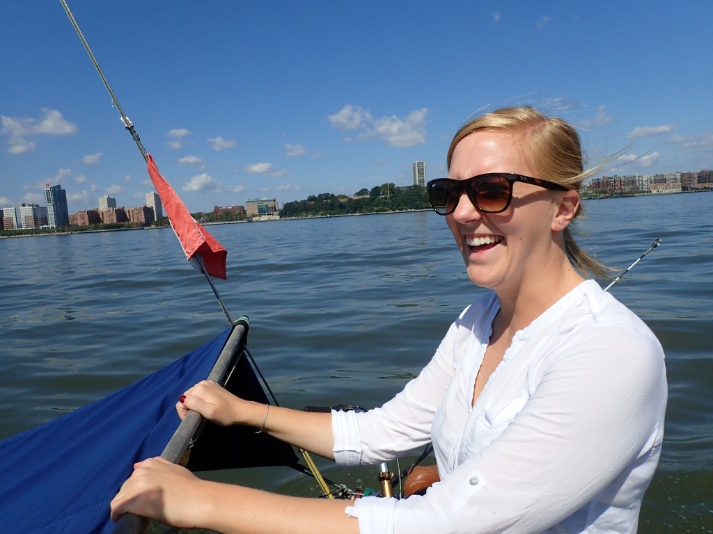 New York ist eine Stadt, die man wunderbar zu Fuß erkunden kann. Gemeinsam mit Ma und Vicky spazieren wir tagelang durch die exklusiven Wohngegenden auf der Upper East- und Westside, erkunden den Broadway mit Times Square und Flatiron Building, testen mit wechselndem Erfolg IPAs in den Pubs auf der Amsterdam Avenue oder picknicken im Central Park. Jeden Tag kommen wir durch neue Viertel, wir sind alle von der unglaublichen Vielfalt in Manhattan überrascht. Von Fotos kennt man ja hauptsächlich die Skyline von Downtown Manhattan, aber schon ein wenig weiter im Norden bekommt die Insel einen ganz anderen Charakter. Da gibt es altehrwürdige Stadthäuser in mit Bäumen gesäumten Straßen, exklusive Wohnblöcke mit Lieferanteneingang und fest angestellten doormen, viele Parks mit großen Spielplätzen und dazwischen natürlich die wohlbekannten Wolkenkratzer mit Glasfassade. Allein durch die unglaubliche Masse an Menschen, die hier wohnt (die Metropolregion New York City hat in etwa 20 Millionen Einwohner) gibt es hier nichts, was es nicht gibt. Das reicht von jeder nur erdenklichen Art an Lokalen oder Geschäften über Rollschuh-Tanzen mit DJ am Sonntag im Central Park bis hin zum lebensgroßen Modell eines Blauwals im Museum. Wir haben jedenfalls jede Menge Spaß und sind nach wie vor von New York begeistert! Der einzige Wehrmutstropfen ist unser Ankerplatz. Nachdem die Marinas in Manhattan kilometerweit außerhalb unserer Preisklasse liegen, ankert die SAILOR MOON im Hudson River beim West 79th Street Boat Basin, einer öffentlichen Marina. Die Gästebojen sind leider gerade außer Betrieb und die Dinghyfahrt an Land äußerst lang und nass. Dazu kommt noch, dass der Hudson River nicht gerade sauber und (laut Vicky) auch sehr kalt ist und gezeitenbedingt bis bis zu 5 Knoten strömt. Die Dinghyfahrten müssen also gut auf die Tide abgestimmt werden, oft muss auch der Großteil der Crew über die glitschigen Steine am Ufer klettern, um das Gewicht im Dinghy zu reduzieren.
